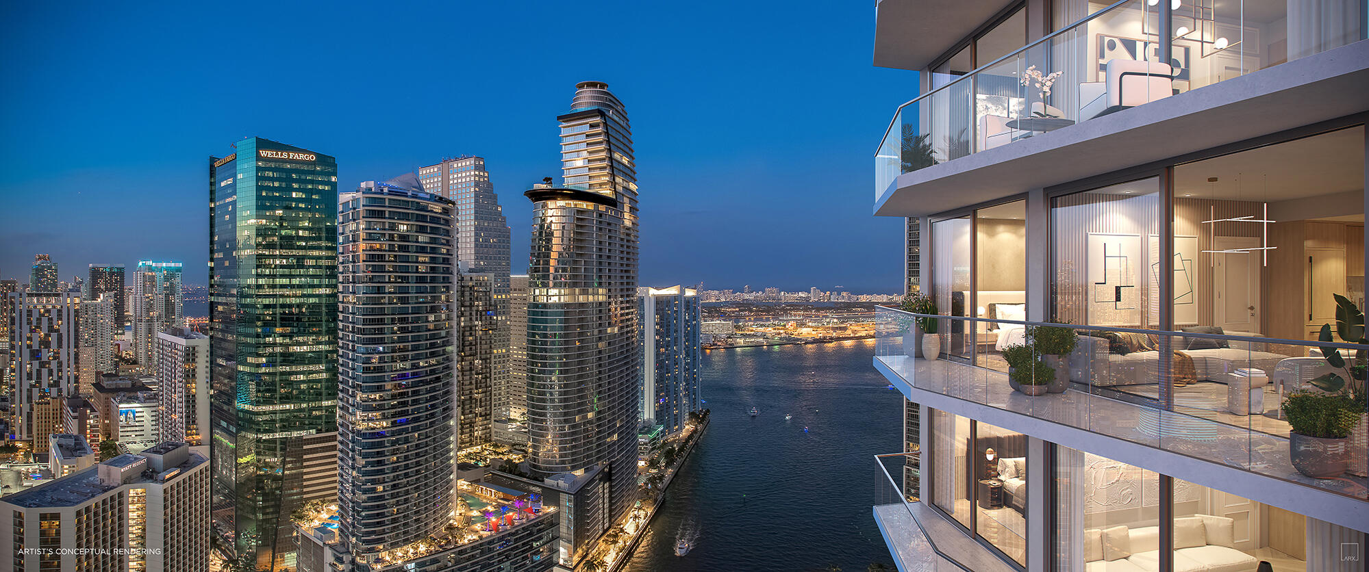 498 Residencias / 45 Pisos.Configuraciones de estudios, una y dos habitaciones.Desarrollado por The Related Group & Diseñado por Arquitectonica.